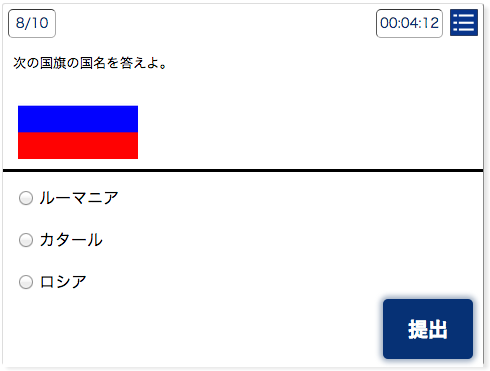 国旗クイズに挑戦!クイズは毎回ランダムで10問出題されます。
