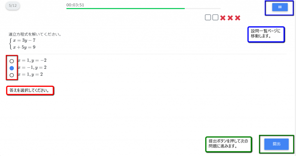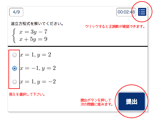 ※詳しくは、出題形式一覧をご覧ください。