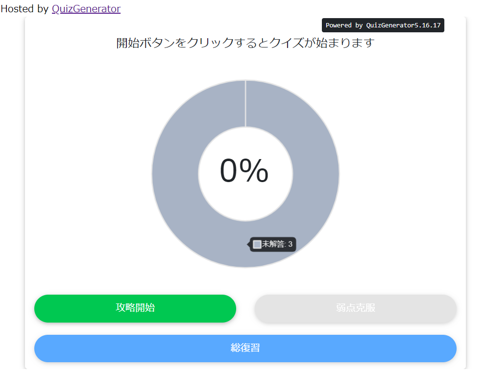 QuizGeneratorのスタート画面は、下記のように表示されます。