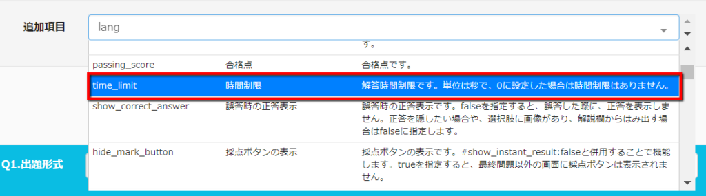 制限時間の単位は【秒】で指定します。