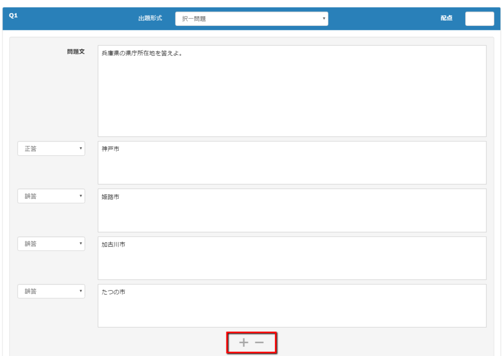 以下の例の1問目は、問題文は「北海道」、正解は「札幌市」、不正解は「函館市」「帯広市」「苫小牧市」です。