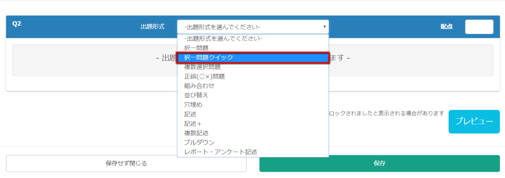 表形式で問題を作成するには、ファイルの先頭に「#format:table」と記述してください。