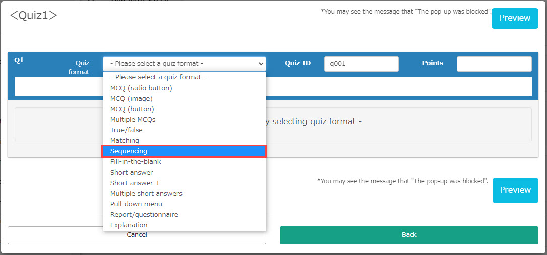 *The insertion of images, audio, and mathematical formulas in the choices section is not supported.