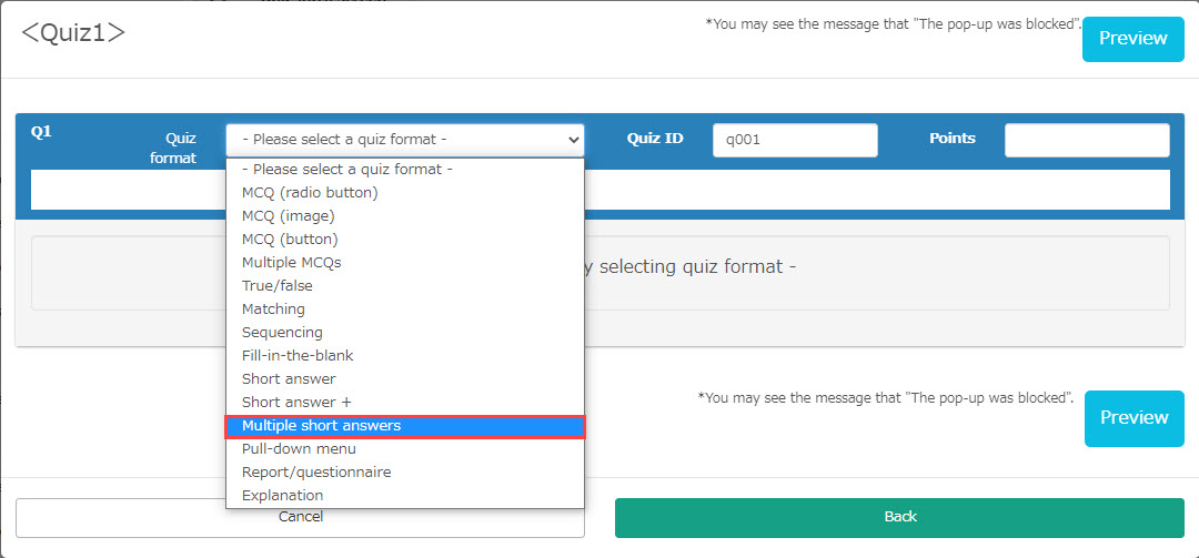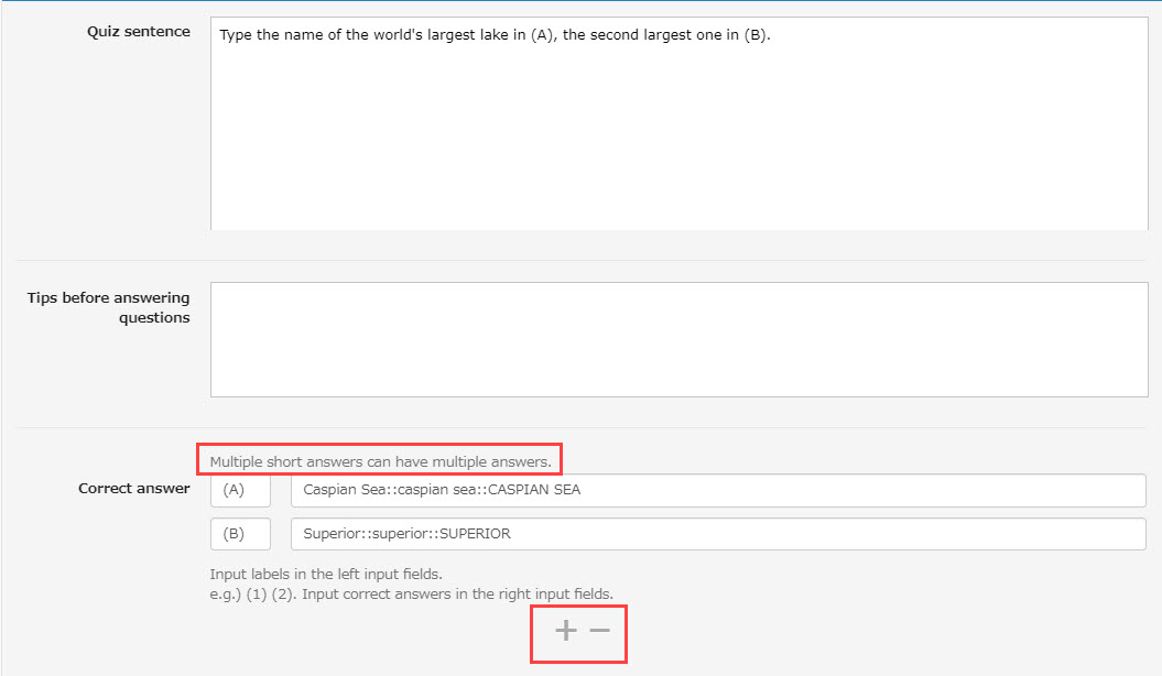 You can also set multiple correct answers in one entry field by entering "::" after the correct answer.