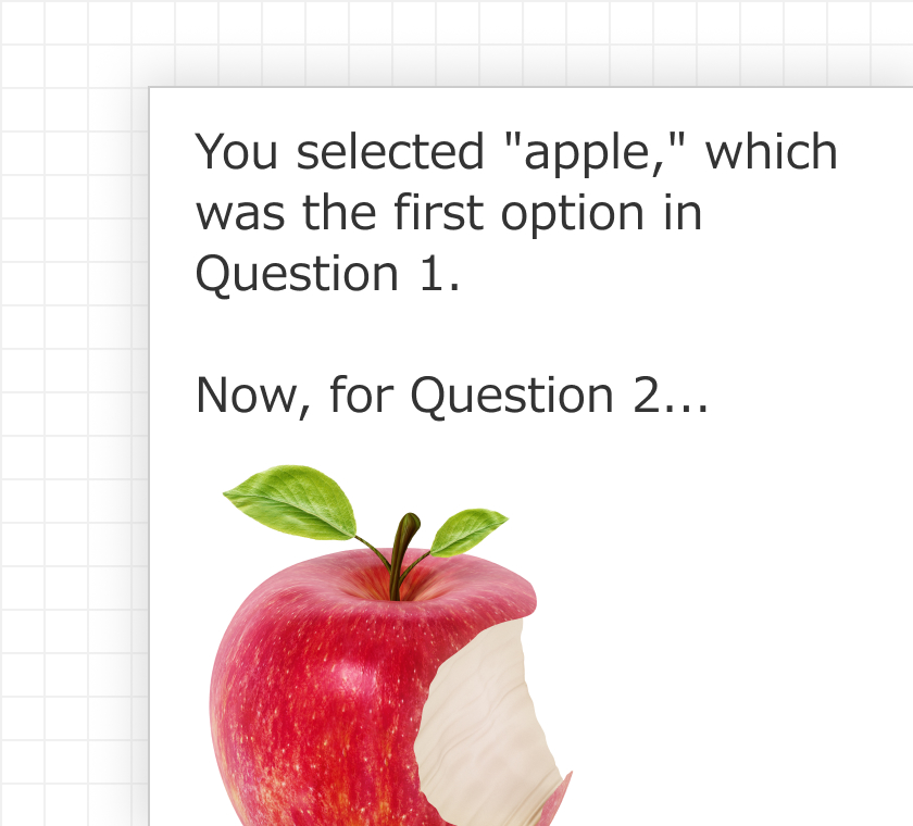 Any question text can be displayed in other question texts and explanations.