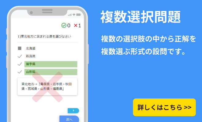 In ordinary multiple-choice questions, after selecting an option, the choice is confirmed with a submit button, but in this format, the choice itself is a button, allowing one-click answers and efficient learning.